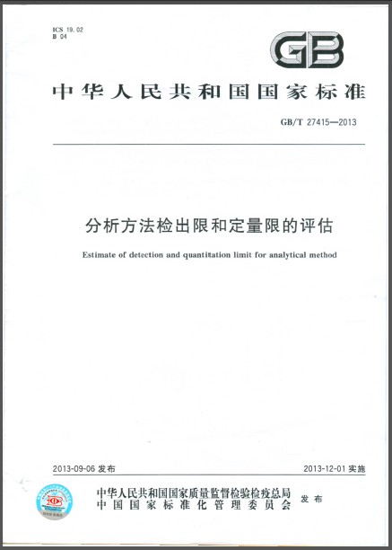 GB/T 27415-2013 分析方法检出限和定量限的评估 英文版 需联系翻译