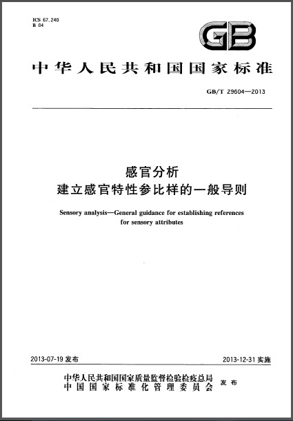 GB/T 29604-2013 感官分析 建立感官特性参比样的一般导则 英文版 需联系翻译