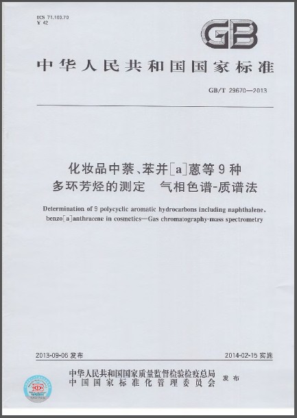 GB/T 29670-2013 化妆品中萘、苯并[α]蒽等9种多环芳烃的测定 英文版 需联系翻译