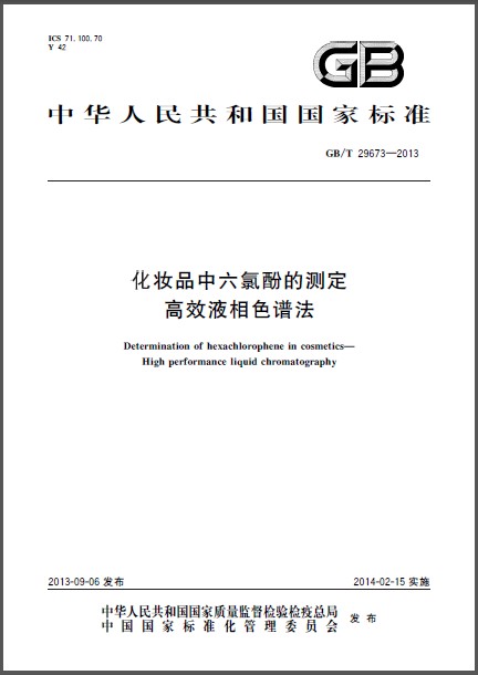 GB/T 29673-2013 化妆品中六氯酚的测定 高效液相色谱法 英文版 需联系翻译