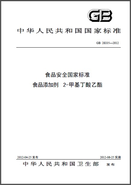 GB 28335-2012 食品安全国家标准 食品添加剂 2-甲基丁酸乙酯 英文版 需联系翻译
