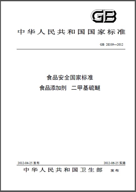 GB 28339-2012 食品安全国家标准 食品添加剂 二甲基硫醚 英文版 需联系翻译