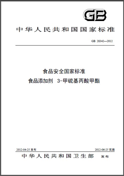 GB 28342-2012 食品安全国家标准 食品添加剂 3-甲硫基丙酸甲酯 英文版 需联系翻译