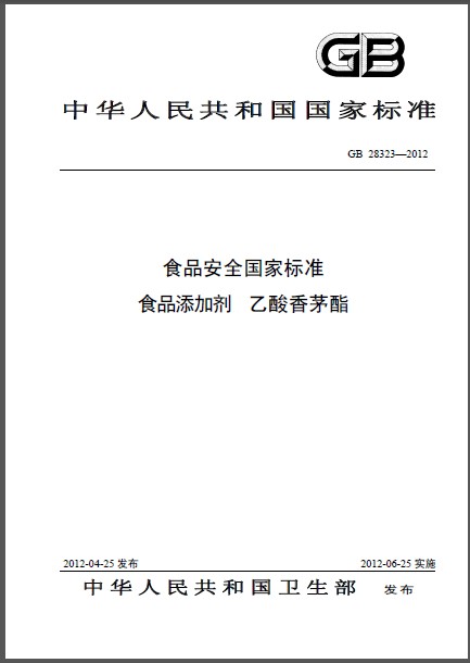 GB 28323-2012 食品安全国家标准 食品添加剂 乙酸香茅酯 英文版 需联系翻译