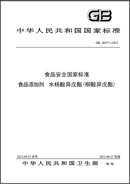 GB 28357-2012 食品添加剂 水杨酸异戊酯(柳酸异戊酯) 英文版 需联系翻译