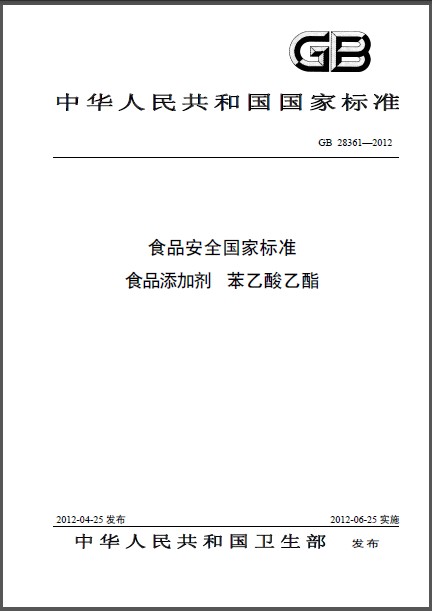 GB 28361-2012 食品安全国家标准 食品添加剂 苯乙酸乙酯 英文版 需联系翻译