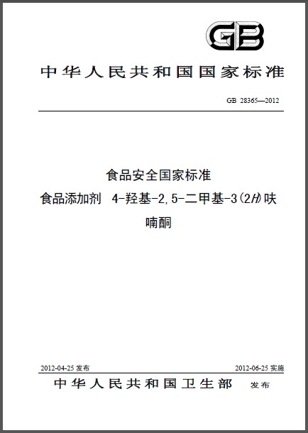 GB 28365-2012 食品添加剂4-羟基-2,5-二甲基-3(2H)呋喃酮 英文版 需联系翻译