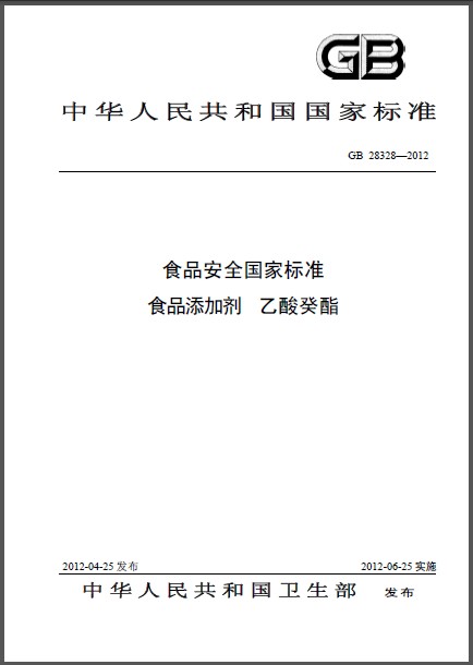 GB 28328-2012 食品安全国家标准 食品添加剂 乙酸癸酯 英文版 需联系翻译