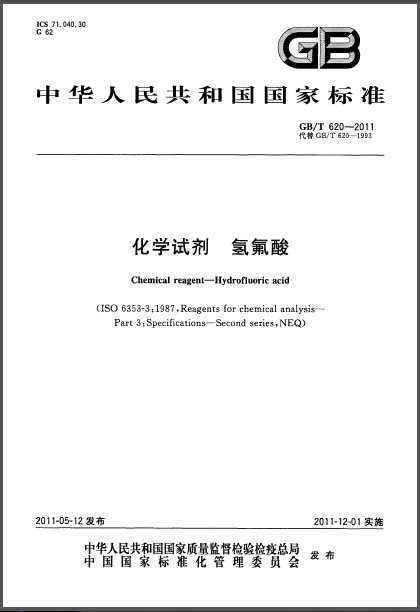 GB/T 620-2011 化学试剂 氢氟酸 英文版 需联系翻译