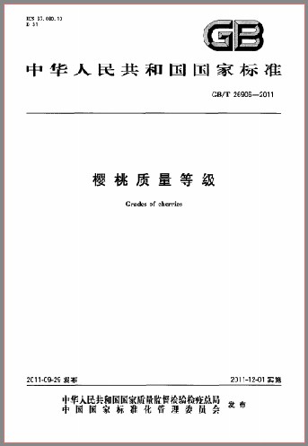 GB/T 26906-2011 樱桃质量等级 英文版 需联系翻译