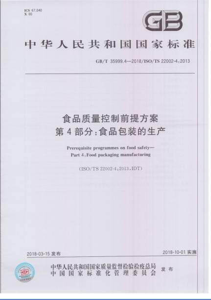 GB/T 35999.4-2018 食品质量控制前提方案 第4部分 英文版 需联系翻译