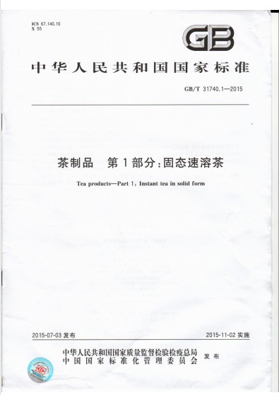 GB/T 31740.1-2015 茶制品 第一部分:固态速溶茶 英文版 需联系翻译