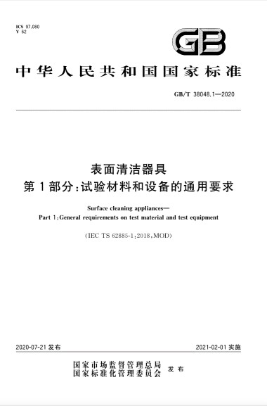 GB/T 38048.1-2020 表面清洁器具第1部分:试验材料和设备的通用要求 英文版需联系翻译