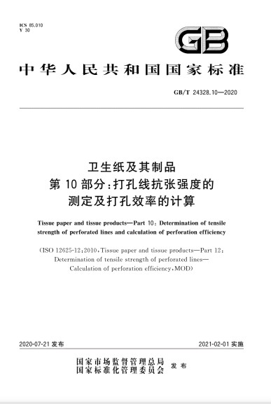 GB/T 24328.10-2020 卫生纸及其制品第10部分 英文版 需联系翻译