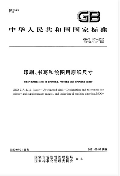 GB/T 147-2020 印刷、书写和绘图用原纸尺寸 英文版 需联系翻译