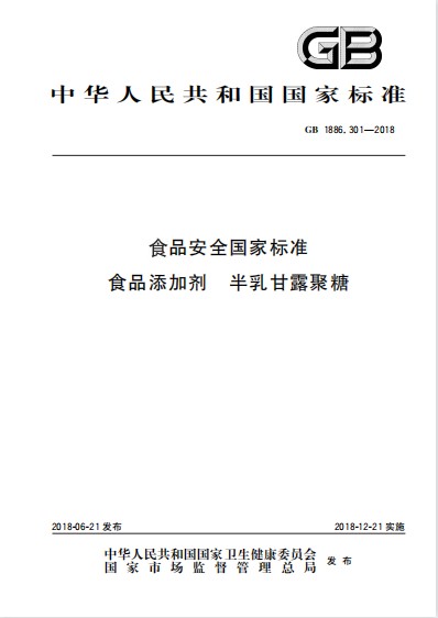 GB 1886.301-2018 食品安全国家标准 食品添加剂 半乳甘露聚糖 英文版 需联系翻译